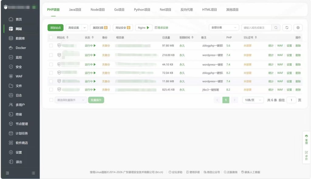 • 1. 登录宝塔面板后,点击左侧「网站」→「添加站点」